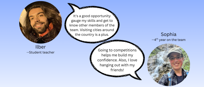 To help make attending competitions financially feasible, the team covers some of the associated costs. See this document for the team’s official stance on: registration fees, gas reimbursement, lodging costs, and membership account balance due dates.