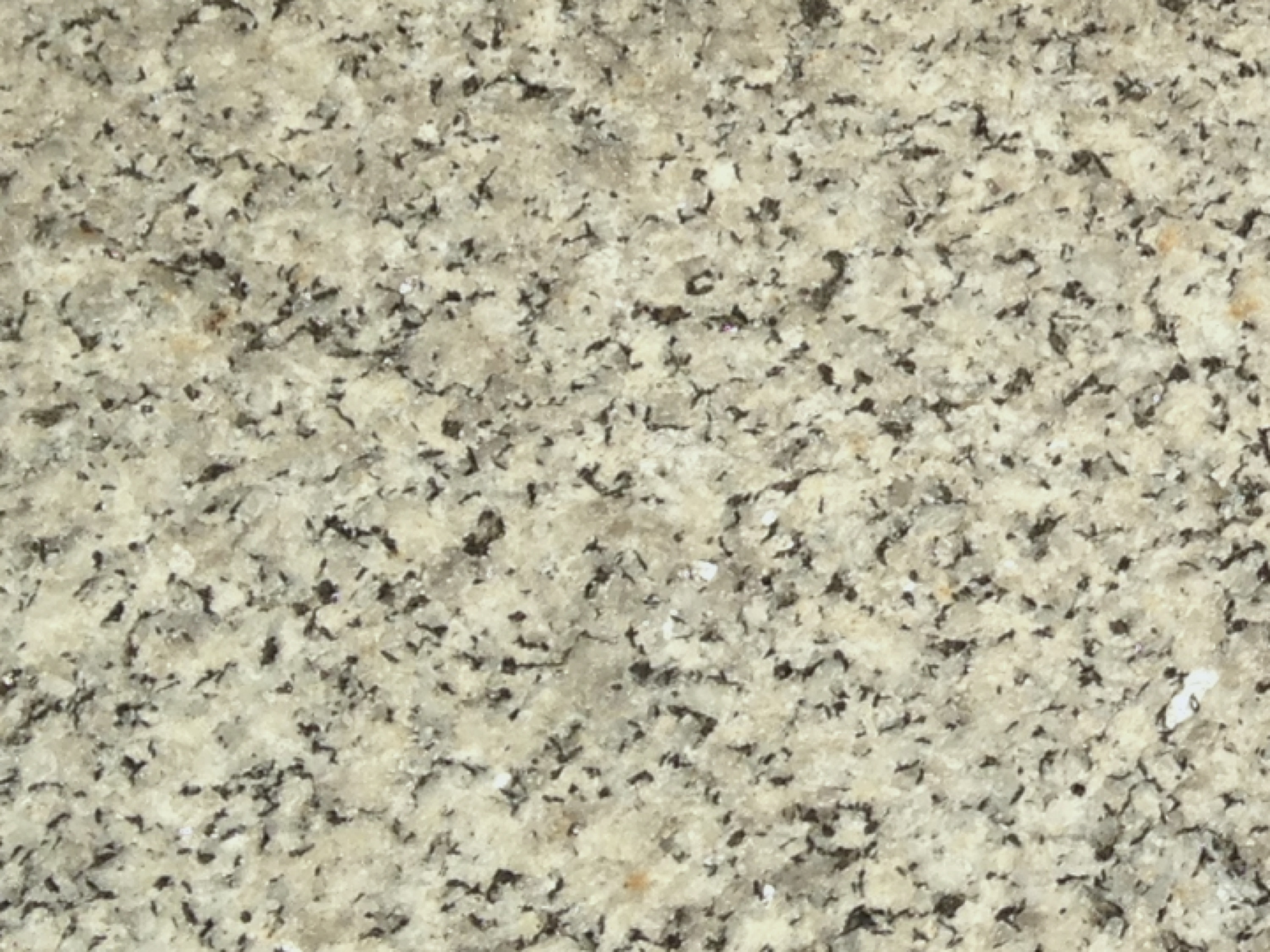 This granodiorite is uniformly medium-grained, which mean it has crystals that are small but big enough to see. The photo is approximately 10 cm across. It contains white feldspar, gray quartz, and black amphibole and was probably quarried near Warman, Minnesota. Igneous rocks such as granodiorite are strong and sturdy stones that withstand footsteps for decades.