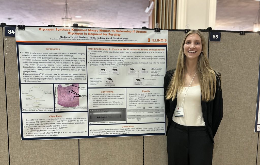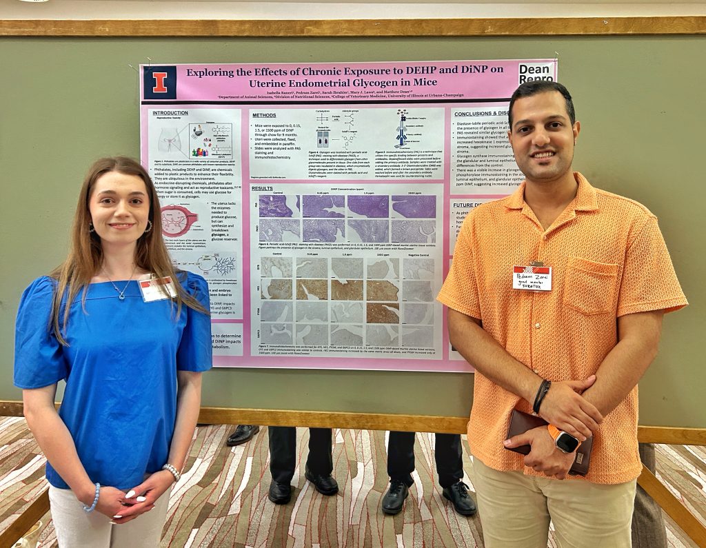 Lab Fun! Garima’s birthday The Dean Lab at UMSRS 2025 On our way to UMSRS 2025 a (mostly) Dean Lab selfie Annual 3rd floor cookout Late nights and good friends at SSR! The Dean Lab at SSR 2025. Dr. Dean with Dr. Janice Bahr. The lab with Dr. Bahr at the SSR Heritage Lunch in her honor. Isabella, with her mentor Pedram, at the Illinois Summer Research Symposium (ISRS) Happy Birthday, Arpna. Kassandra Master of Science! A year after defending, I finally get to hood my 1st PhD student Sam’s Birthday Celebrating Sijie’s birthday Lab Cookout Fall 2025 Madison at the 2025 Undergraduate Research Symposium Kassandra presenting her work a the 2025 EVIT workship 2024 3rd Floor Holiday Party Kassandra and Pedram talking to undergrads at the ANSC 198 open house. Halloween 2024 Annual Halloween door decorating contest. 2024 Scenes from UMSRS 2024 Lab Bowling 9/20/2024 2024 ASL 3rd floor cookout 2024 ANSC Icecream social Billy’s last day on the 3rd floor. Ondi, a SURETox scholar, presenting her research at ISRS 2024. Sam presents her first poster at SSR 2024. U of I reunion dinner at SSR 2024. Sam mentors Ondi our SURETox scholar Malia successfully defended her PhD Lunch with former SSR president Pete Hansen Celebrating Chanaka’s last day on the 3rd floor. Malia presenting at IETS 2024 Dr. Dean’s birthday 3rd floor holiday party Axe throwing fun with some coworkers. a night out with the Nowak Lab at UMSRS 2023 scenes from the 2023 Upper Midwest Symposium on Reproductive Science (UMSRS). A fun dinner at Chanaka’s ASL 3rd floor cookout! Hanging out with new friends at SSR 2023 Kassandra presenting at the ILLINOIS SUMMER RESEARCH SYMPOSIUM Malia wins the Baker Fellowship Malia wins best poster in Clinical and Preclinical Metabolism II at DNS! While the TEM image of your EVs looks like the moon. Malia presenting at DNS Celebrating Dr. Dean’s Birthday Malia passes her prelim! Sharina presenting her poster at the ILLINOIS SUMMER RESEARCH SYMPOSIUM. Grad Student Appreciate Week + Halloween = THIS Illinois Dinner at SSR 2022 2 happy graduates 1 proud PI SJ starting her talk Celebrating 2 Graduations Alexis’s Defense Alexis’s and Ziting’s Graduation. 2022 DNS Symposium Malia wins best poster in Preclinical Metabolism. Ziting Presents at the DNS symposium. Ziting’s Defense Twin Day SSR 2021 ISRS 2021 SSR 2021 Ziting’s Birthday Impromptu Zoo Trip Dean Lab Spring 2021. Two Birthdays Lab surprises Dr. Dean with a birthday cake! Bowling Night Labsgiving 2019 Illinois Dinner at SSR 2019 SSR 2019