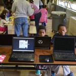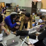The plan slowly took form as we reached out across the community for people to pitch in to our stone soup, and we had an amazing turnout! Over 100 people came, and we had all sorts of activities: hardware disassembly, including portable CD players, cell phones, and laptops; coding in Scratch; a CU wiki scavenger hunt led by InfoCity; a Raspberry Pi station run by Adriana O’Brien of Wolfram Research, who also runs our Raspberry Pi clubs; handmade bookmarks, kaleidoscopes, ornaments, and other decorations; a number of demonstrations run by the folks from the FabLab; a Minecraft lounge; a Makey-Makey music demo set up by Mr. Lash; and a photo booth run by a parent. Quite the line-up!