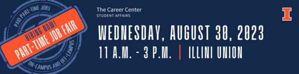 - Part-Time Job Fair – August 30 (11am-3pm): Looking for a part-time job? Come visit the Part-Time Job Fair on August 30 at the Illini Union!