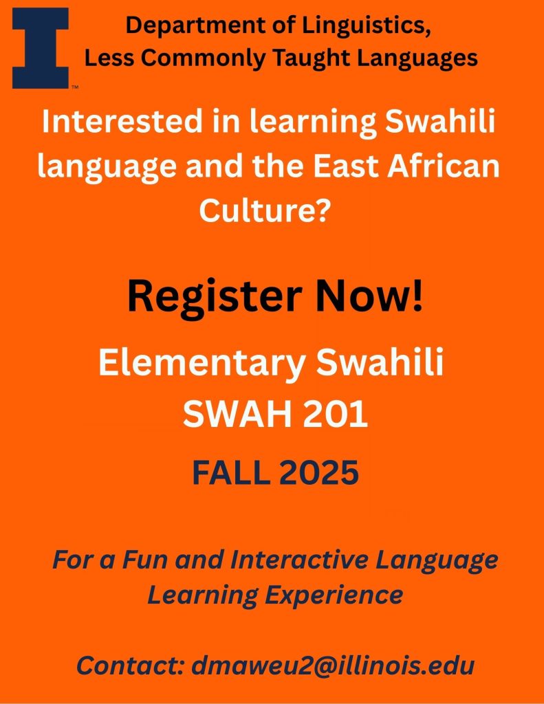 This introductory Swahili course is open to students in all majors and provides a very comfortable language-learning environment. Take it for fun/interest, or as the first step toward completing the Language Other than English requirement!