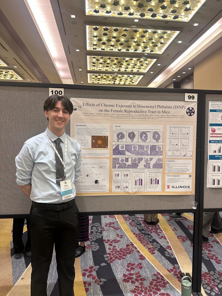 Coby presenting his work titled Effects of Chronic Exposure to Diisononyl Phthalate (DiNP) on the Female Reproductive Tract in Mice at SSR 2025