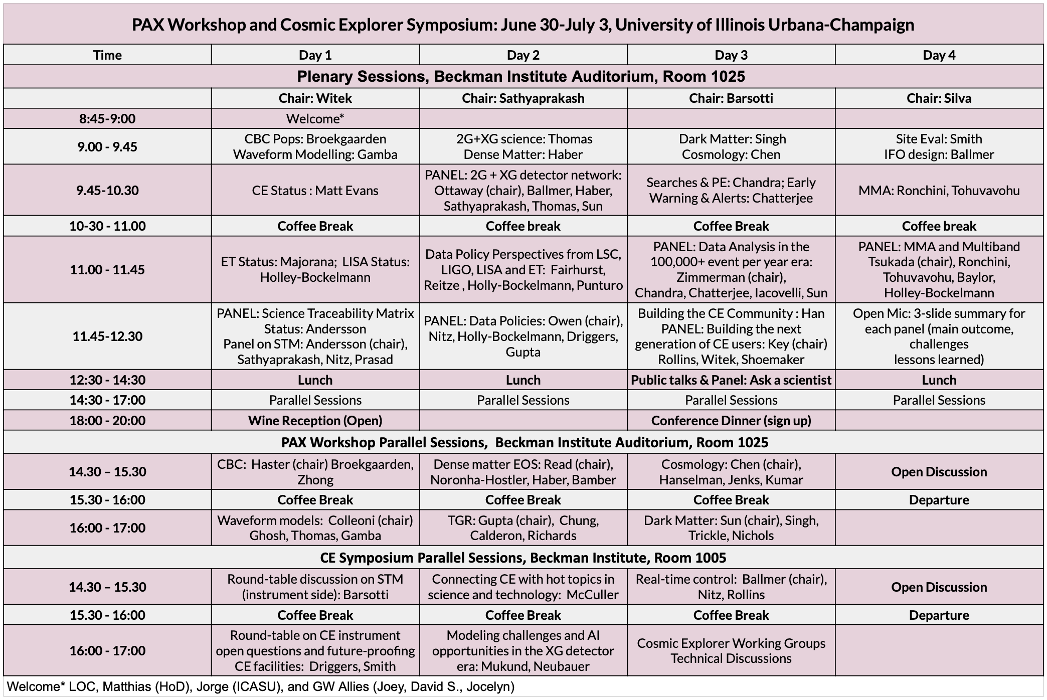Joint session: Cosmic Explorer + PAX at Beckman Institute Auditorium, Room 1025
