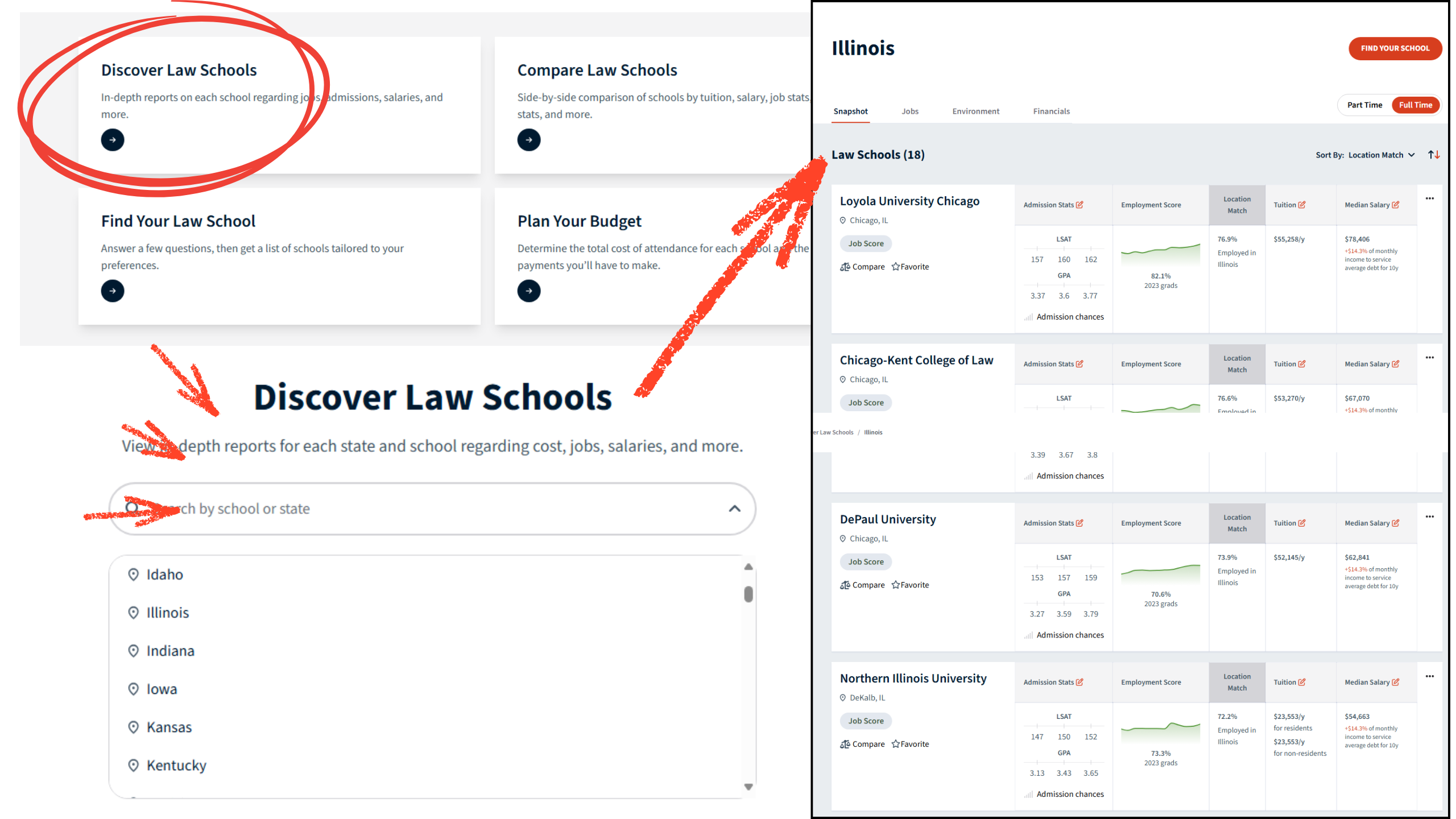 Law School Transparency (LST) compiles publicly available data on law schools to assist applicants with researching schools. LST is available for free through LSAC. Through LST, you can browse law schools, build a personal report, compare law schools, and plan your budget. Your personal report will provide suggestions on law schools and also allow you to do quick comparisons among your top-choice institutions on data related to the cost of attendance, job placement, bar passage, and more!