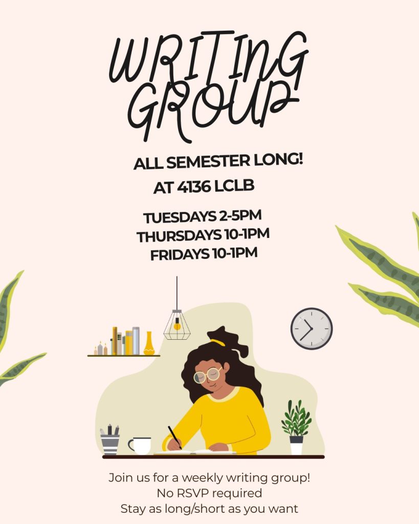 Join your fellow SpanPort grad students for a weekly writing/productivity group in LCLB 4136! This is a space where we meet to have some structured writing, reading, class prep, or grading time.